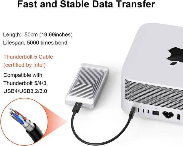 Blazing-fast Speeds: Powered by the Intel JHL9480 controller, it delivers over sequential 6,300MB/s write and 5,900MB/s read speed performance via Thunderbolt 5.
