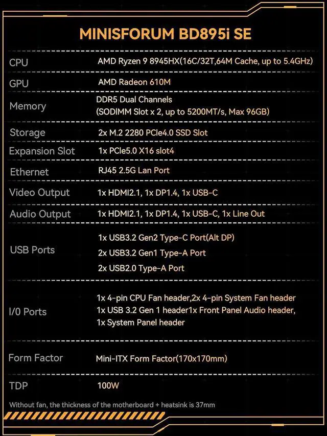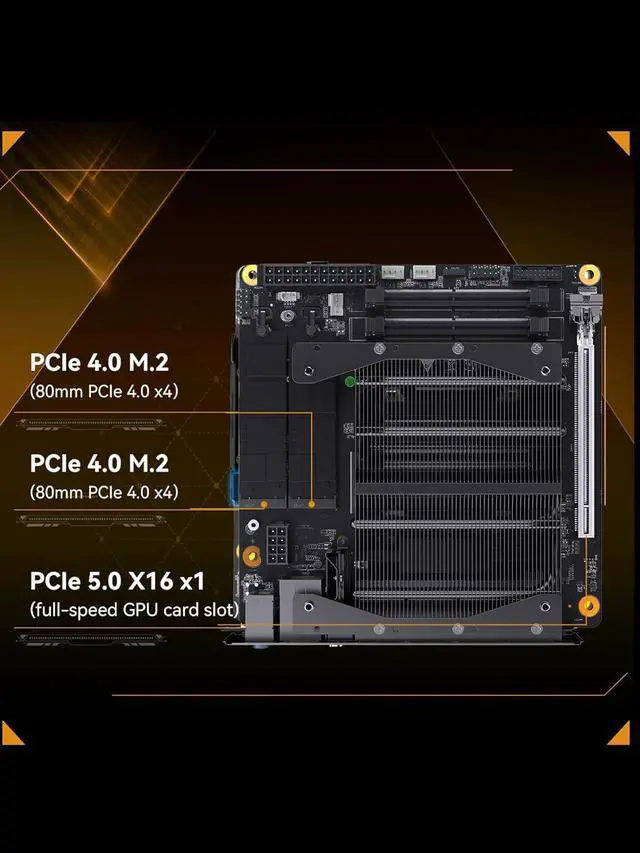 Upgraded PCle 5.0 x16BD895i SE motherboard integrates full-speed PCIe 5.0 x16 graphics card slot, and the newly upgraded metal fixings are added to prevent the graphics card from being too heavy and causing the PCIe slot to bend and deform. While ensuring quality, it can release the full potential of high-performance components. Suitable for various scenarios that require high-performance graphics cards. (Supports Nvidia RTX4090 / AMD RX 7900 XTX).