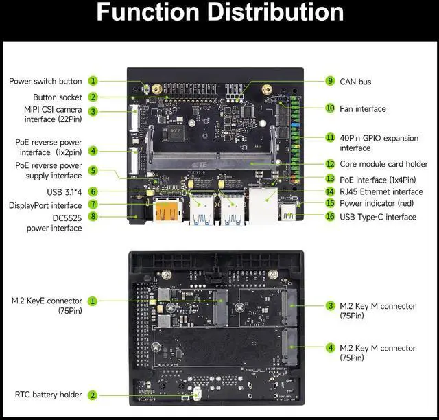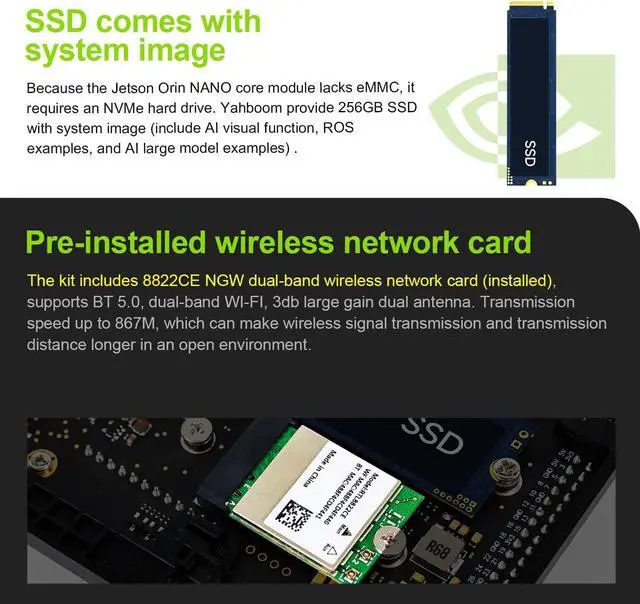 Highly compatible carrier boardYahboom's carrier board is fully compatible with orin nano module. Compared to carrier boards that use Jetson Nano on the market, the newly upgraded circuit supports 25W power mode, which enables larger and more complex neural networks and fully leverages the performance of the core module. The resources, size, and interfaces of the Yahboom carrier board are consistent with the official board, with the only difference addition of power switch button.