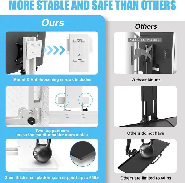 Heavy-Duty Support for Mini PCs: Holds Mac Mini/Intel NUC securely under your monitor with 2mm steel plate + dual stabilizing ears. 3X stronger than typical small-PC mounts no sagging even at max extension!