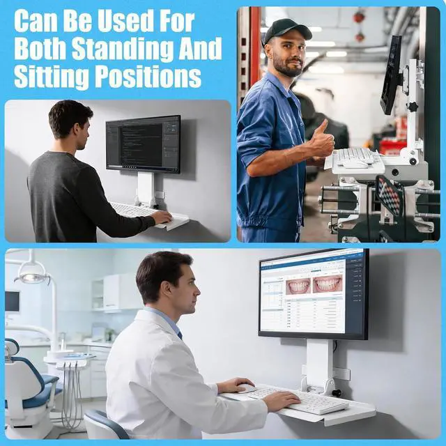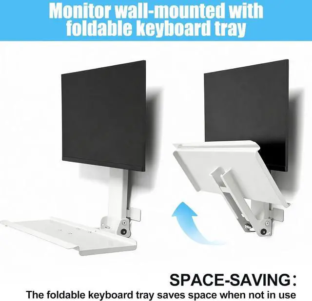 Wall Mount Computer Workstation, Monitor Wall Mount with Foldable 26" Keyboard Tray and Mouse Space, Fits 17-32 inch Screens, Heavy Duty 2mm Steel Space Saving Desk