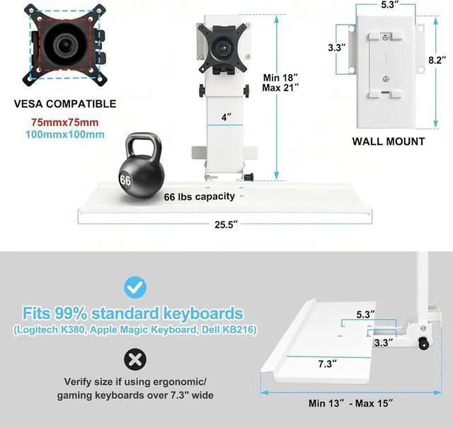 Foldable Tray for Standard Keyboards (7.3" Wide):This 26" platform fits mainstream keyboards like Apple Magic Keyboard or Logitech K380 while excluding bulkier ergonomic types. Fold it vertically to free up space perfect for compact setups with Mac Mini!