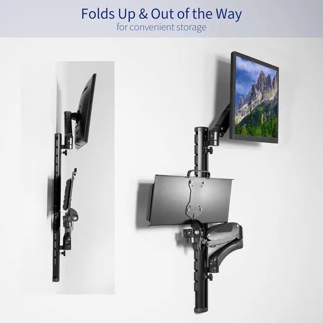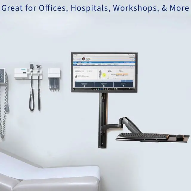 Wall Mount Station for monitor and keyboard featuring easy height adjustment using mechanical spring (monitor mount) and pneumatic spring (keyboard mount) technology to accommodate any position