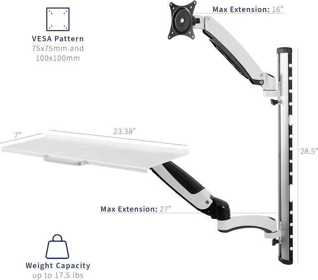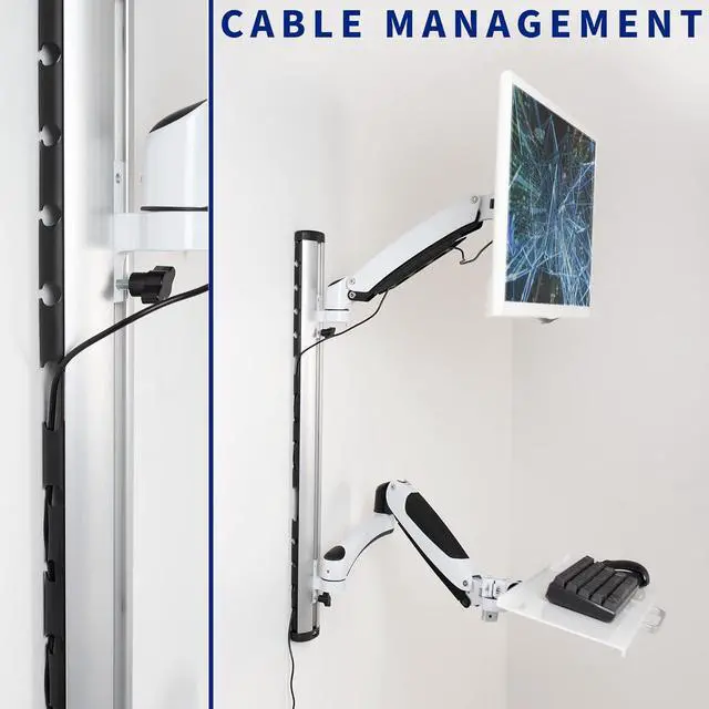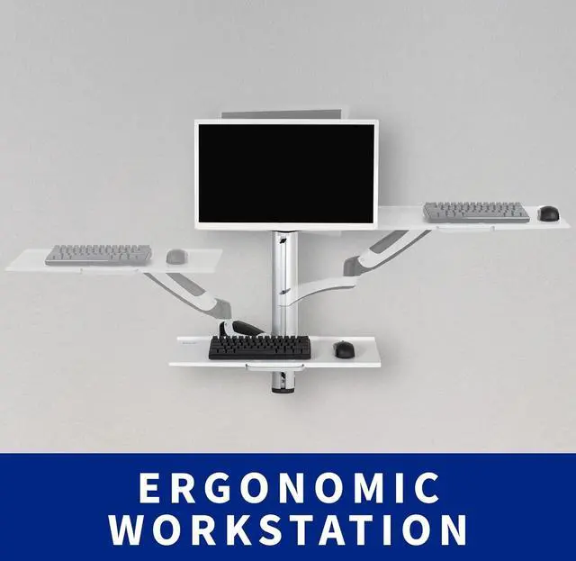 Wall Mount Station for monitor and keyboard featuring easy height adjustment using mechanical spring (monitor mount) and pneumatic spring (keyboard mount) technology to accommodate any position