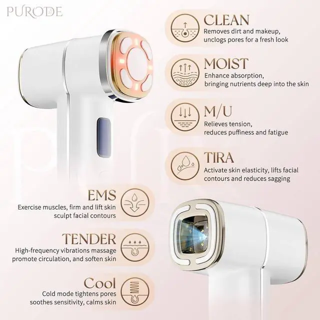[7 Modes & 5 Levels] This all-in-one handheld beauty device combines cleansing, moisturizing, LED care, EMS, lifting, soothing, and coolingall adjustable across 5 intensity levels. Lower intensity is recommended for sensitive skin.