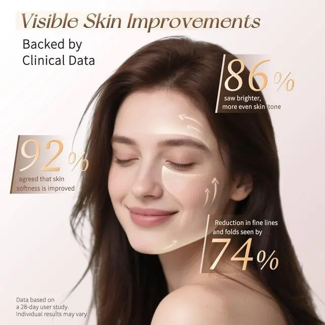 [Exclusive Japanese Patent] Expertly engineered in Japan, this device delivers visible skincare results backed by a 28-day clinical study: +22% skin hydration, +23% skin elasticity, 28% reduction in pore visibility, 15% decrease in wrinkle depth, and 33% less pigmentation. 92% of users said their skin looked smoother and more radiantlike glass skin.