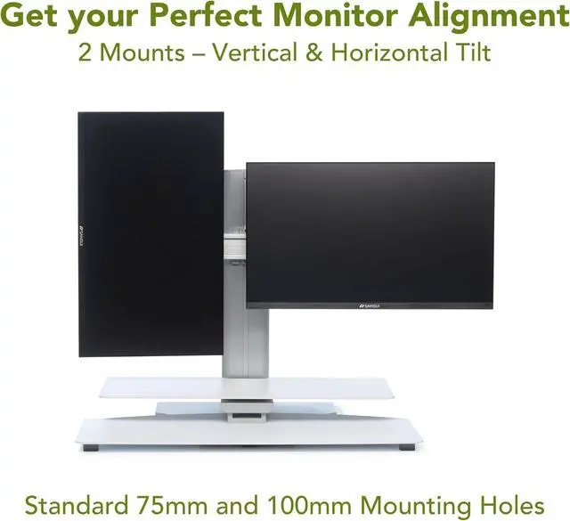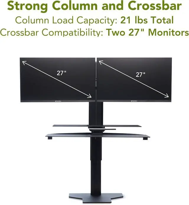 ADJUSTABLE SCREEN ANGLES Position the dual-monitor crossbar anywhere along the column and easily adjust screen angles with standard VESA-compatible mounts that tilt horizontally and vertically to minimize eye strain.
