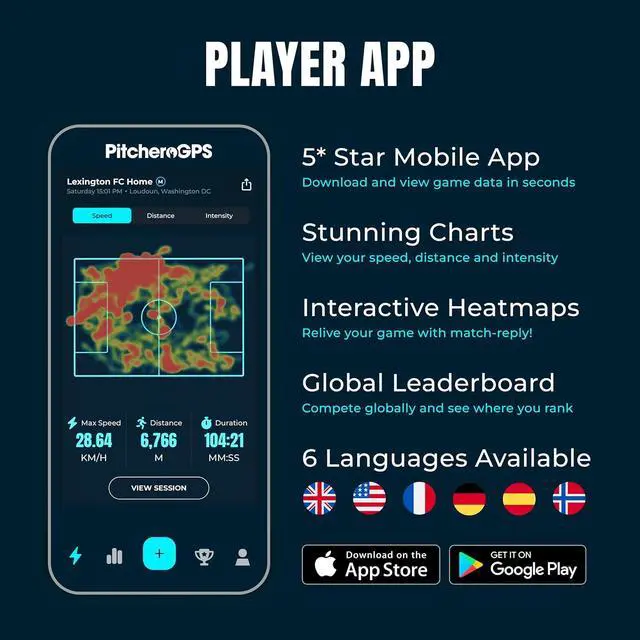 Advanced Analytics to Boost Performance: Analyze 18 core soccer metrics on the PitcheroGPS app and compare them with others by sport, position, or age. With heat maps and insights, this soccer tracker vest is for those looking to improve performance.