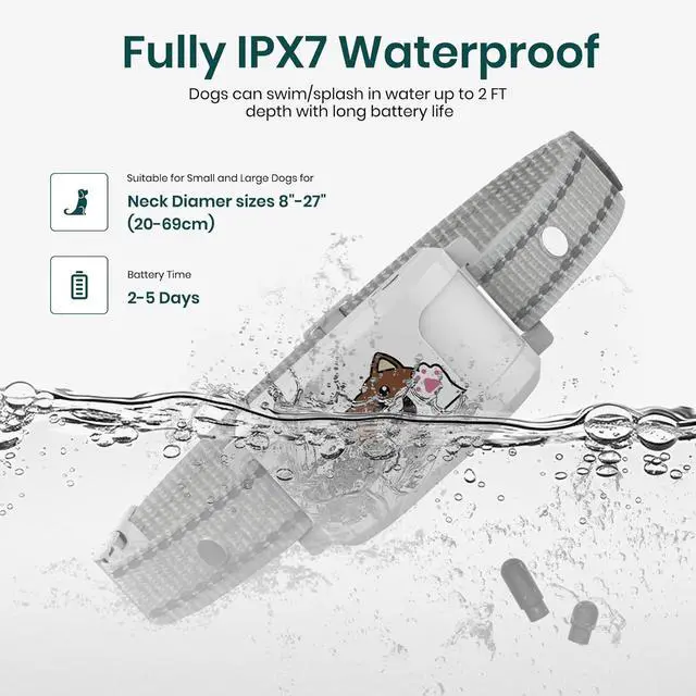 IPX7 WATERPROOF + EXTRA LONG LIFE The wireless dog fence training collar is waterproof and designed to withstand rain/snow (IPX7 certified) and lasts up to 30% longer than the industry average.The GPS electric fence comes with a rechargeable battery, the system can be used for up to 48 hours of continuous use on a single charge with a smart power saving mode. When your dog remains stationary for 2 minutes, the device automatically enters sleep mode to conserve energy; wakes up immediately when motion is detected, ensuring longer battery life and ease of daily use.