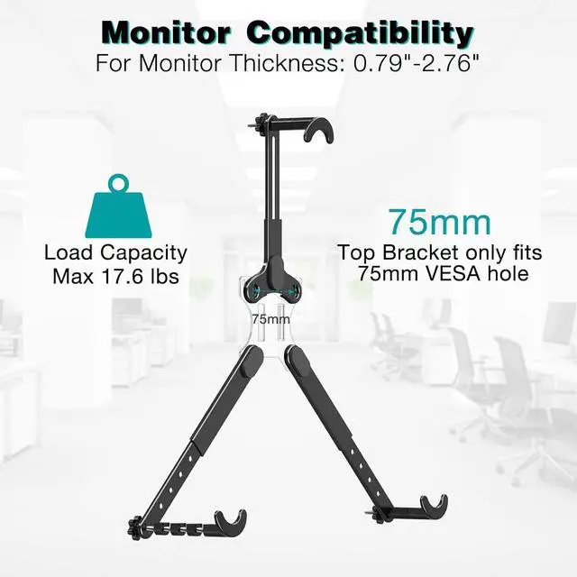 Compatible with Non-VESA Monitors - The VESA mount for most 19"-32" computer screens, weighing up to 17.6 lbs, screen thickness of 0.79 to 2.76, bezel height from 10.39 to 17.32. Our VESA adapter fits iMac, Acer, LG, HP, Samsung, Dell, ASUS and Viewsonic monitors that do not have a standard bolt-hole pattern. (Please note VESA plate and the monitor mount are not included)