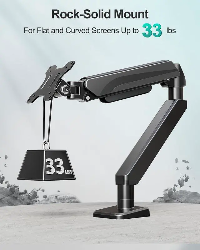 MOUNT PRO Ultrawide Single Monitor Arm for 22"- 42" Screens, Monitor Desk Mount Stand Holds up to 33 lbs, Heavy Duty Fully Adjustable Gas Spring Desk Mount, VESA Mount with Clamp/Grommet Base