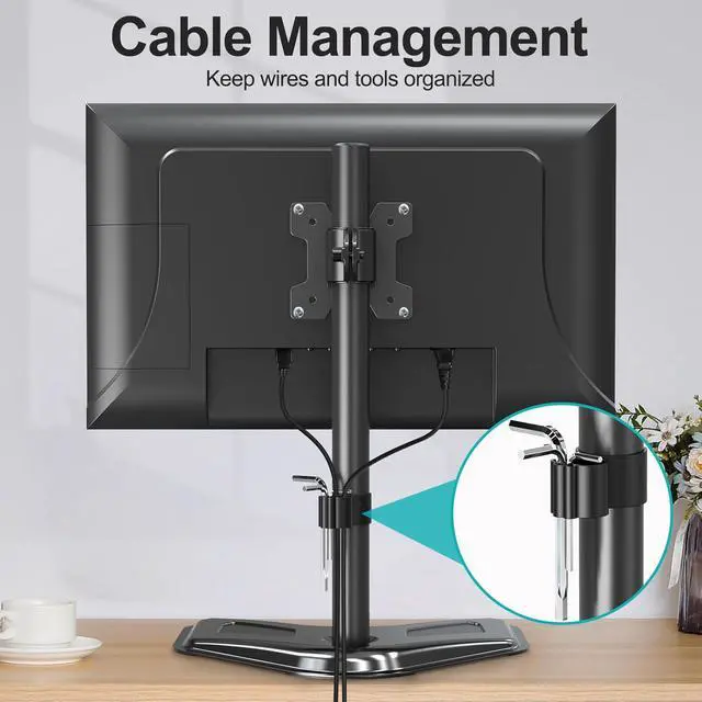 Clutter-free Desktop - Freely standing on the desk, this monitor stand saves space on your workstation. It comes with clips for tidy cable management which helps keep AV and power cords organized. Allow wires to move freely while changing screen positions and keep cable neat organized.