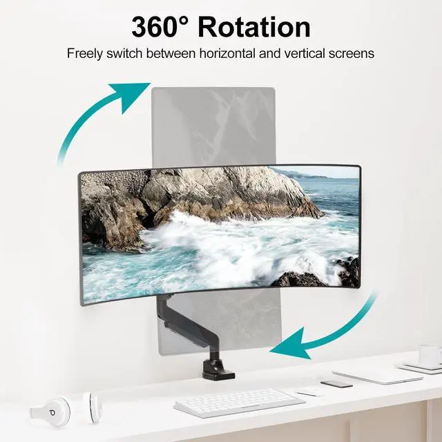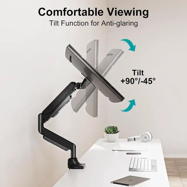 Full Motion Double Monitor Stand: Dual monitor arms offer an exceptional range of flexible motion featuring +90° to -45° tilt, 180° swivel, 360° rotation. The dual monitor desk mount easily set your monitors at an optimal angle to improve work efficiency. Whether you need landscape or portrait viewing, the flexible monitor arm can provide the perfect viewing angle.