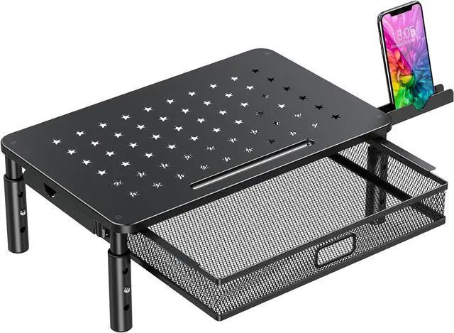Zimilar Monitor Stand Riser with Metal Mesh Drawer, Height Adjustable Monitor Riser with Phone Holder for Computer, Laptop, Printer, Notebook, Premium Metal Computer Monitor Stand with Storage