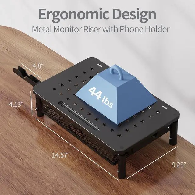 Prevent Overheating: The unique star mesh platform improves airflow and heat exchange to prevent devices from overheating. You can use your new ergonomic monitor stand riser without worrying about overheating.