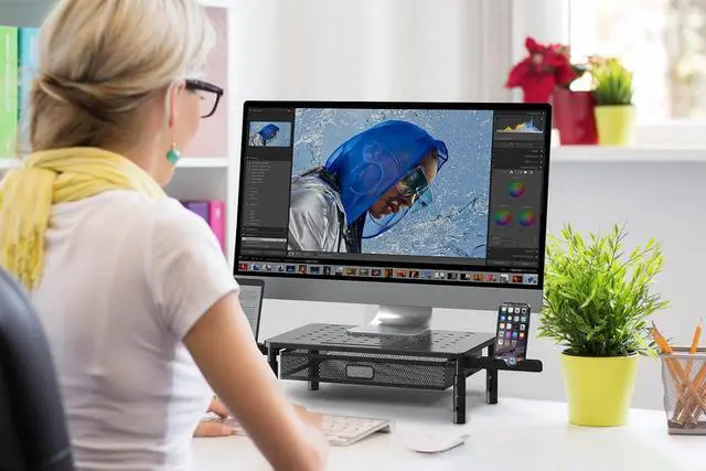 Improve Posture and Relieve Pain: This ergonomic computer monitor riser with drawer has three height settings (4.13, 4.92, and 5.71) to raise your screen to a comfortable eye-level. This helps to relieve eye-strain, back, and neck pain throughout the workday.