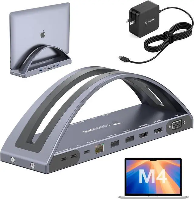 MacBook Pro Docking Station with Vertical Stand - The TobenONE laptop docking station stand is innovatively designed according to market demand. By combining the docking station with the laptop stand, you can not only extend the display for your MacBook Pro/Max laptop but also use it as a stand, saving your desk space and effectively organizing cables, thereby improving your work efficiency