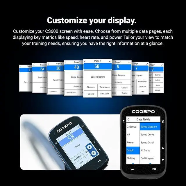 PERSONALIZED DATA DASHBOARD: Customize your display layout and prioritize the metrics that matter most to you. Create tailored views for different riding styles, allowing you to focus on your performance without distraction.