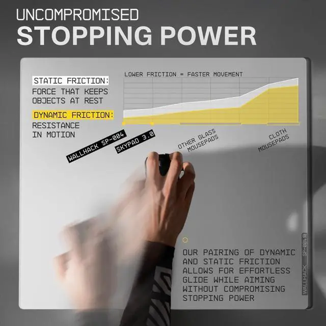 A NEW AIMING EXPERIENCE: The uncoated micro-etched surface provides extremely low friction with great stopping power for unparalleled synergy between fast and controlled movements. A novel experience only possible on a glass pad.