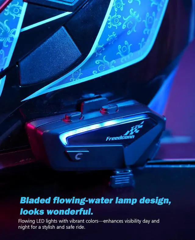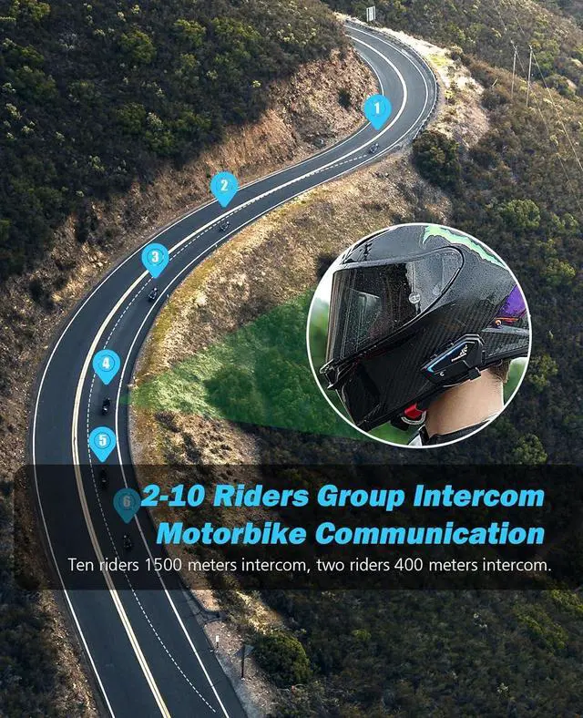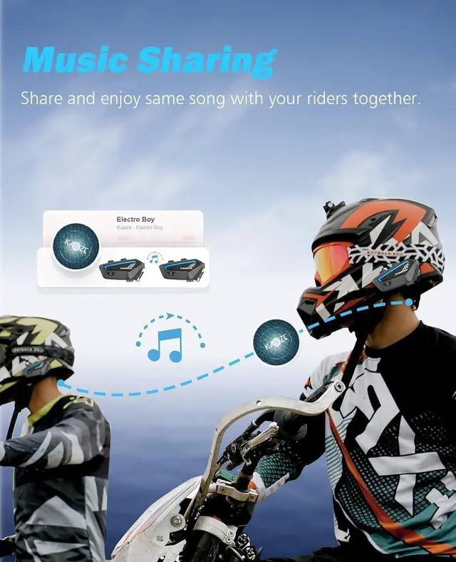 6-Rider Conference ModeThis motorcycle helmet bluetooth headset delivers 1200m-range intercom. Share Spotify playlists between 2 headsets while coordinating with 6 additional riders via group channel