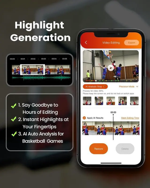Exclusive XbotGo App No Subscription Fee: Easily capture key moments using the Bluetooth remote or Apple Watch, and create highlight reels with a single tap. Stay on top of the action with the live scoreboard feature, keeping track of scores in real time. Enjoy 20GB of free cloud storage to securely save your footage, free up your phones memory, and access your videos anytime.Note: All without any extra fees.