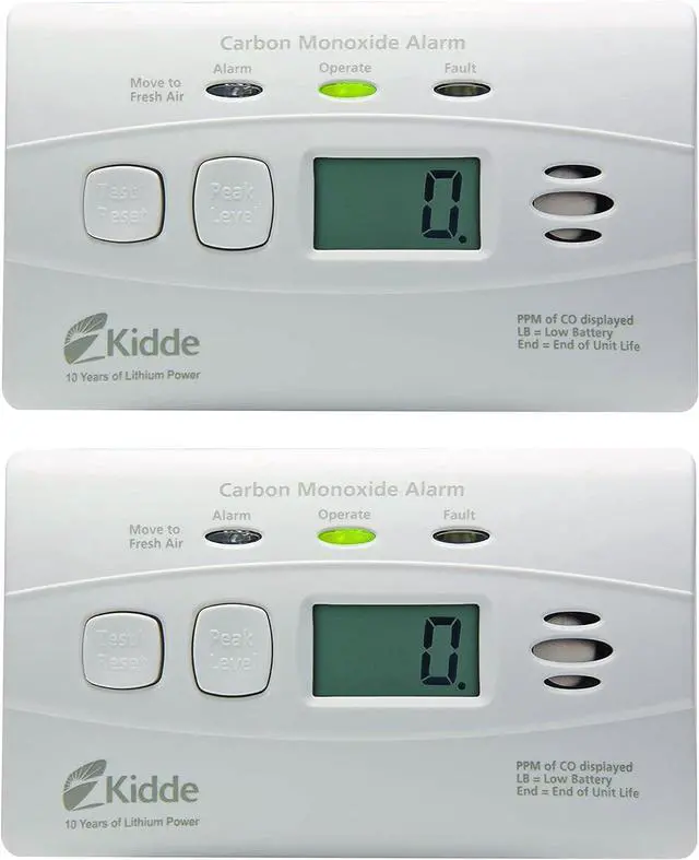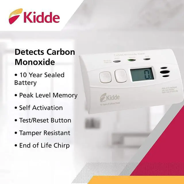 Kidde Carbon Monoxide Detector with 10-Year Battery, Digital Display, 3 LEDs, Replacement Indicator, Peak Level Memory