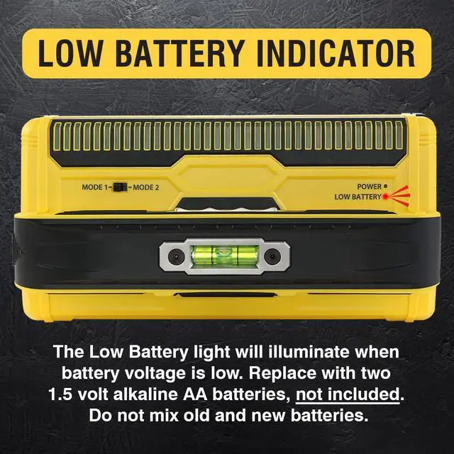 CONVENIENT EXTRAS: Built-In Bubble Level, Low Battery Indicator, and Handy Pencil Caddy. Requires two AA batteries (not included).