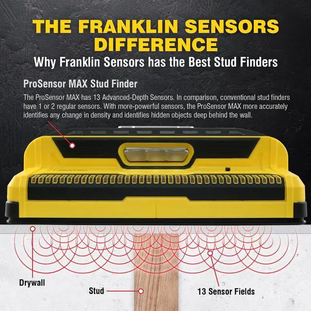 Franklin Sensors ProSensor MAX Stud Finder with 13-Sensors, Wood & Metal Stud Detector/Wall Scanner, Scans Through Plaster, OSB & More, Made in the USA