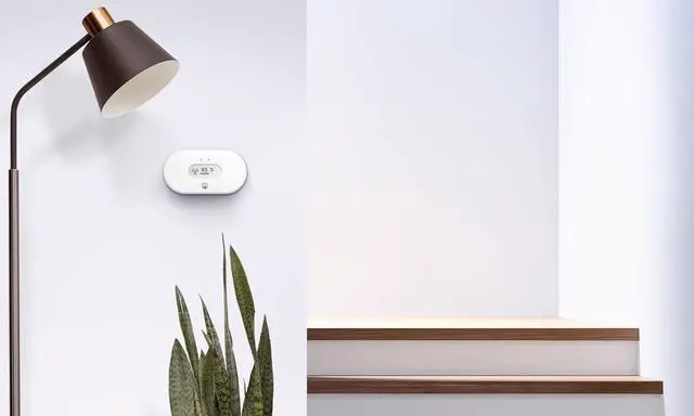 CUSTOMIZABLE DISPLAY: Set your Calm Tech Display view preferences or wave hand in front to trigger sensor levels, with simple color coding. Display up to four values on the eInk screen. Check complete readings in the app.