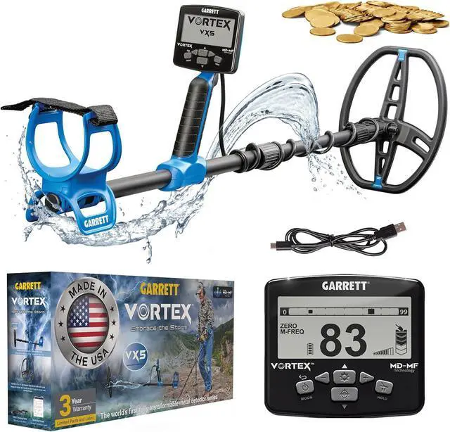 Garrett Metal Detectors Vortex VX5 - Made in The USA - Professional Metal Detector for Adults - Waterproof to 16 ft, 8.5 x 11 Searchcoil, Lightweight 2.9 lbs, Upgradable for Enhanced Performance