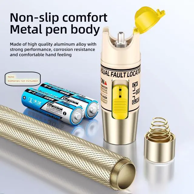 Excellent FunctionsThis fiber optic tester is perfect for field tests because of its multiple functions such as constant output power, multi-interface adaptation, low battery warning, long battery life, and long-distance detection. Use two convenient AA batteries(Not included)