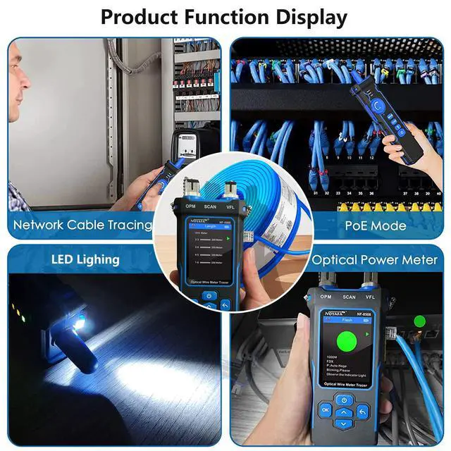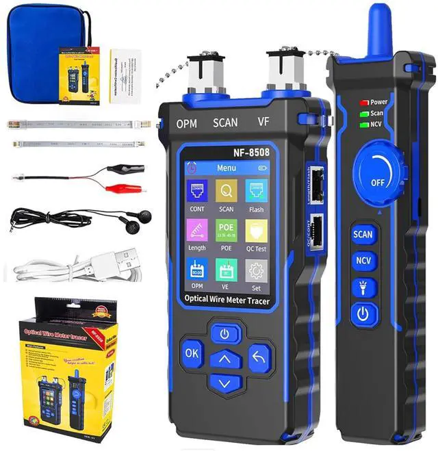 NOYAFA NF-8508 Network Cable Tester with Optical Power Meter VFL, RJ11 RJ45/PoE Tester/CAT5 CAT6/length Measurement, Telephone line Trace Meter with Headset, Network Tools