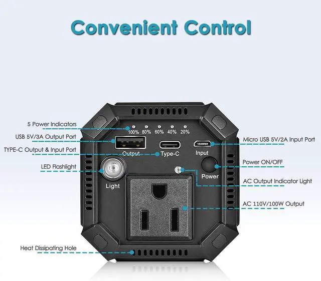 Portable Power Source: Featured with 1 x AC outlet (max 100W), 1 x USB output (5V/2A), 1 x Type-C output & input (5V/3A). Multiple charging ports meet the needs of various devices. Portable size fits perfectly in backpack or suitcase, easy to carry for business trip or traveling.