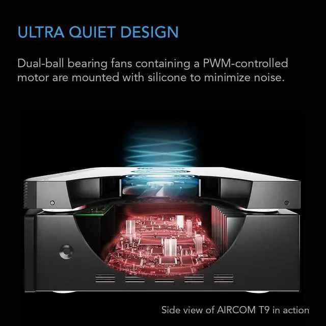 • A quiet fan system designed for cooling routers, modems, game consoles, and other AV components.