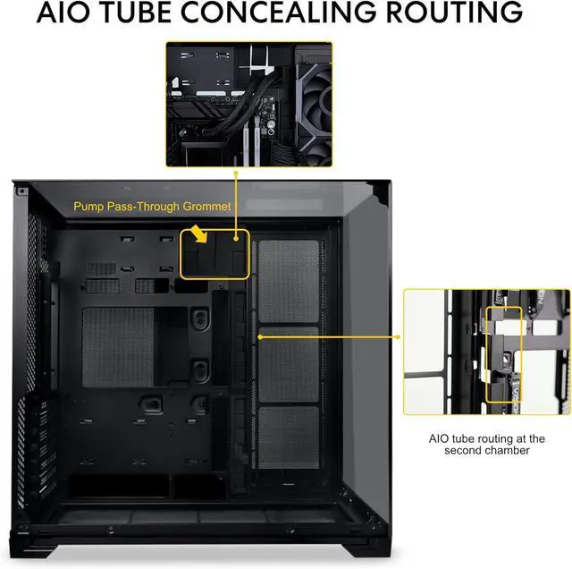 5. The innovative design conceals AIO tubing within the second chamber when the AIO is positioned on the side