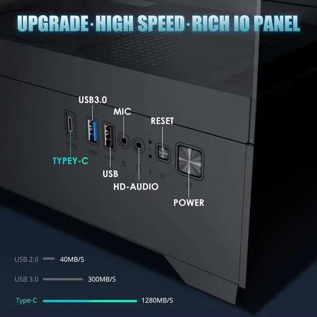 Upgrade Your High-Speed IO Panel - The LINEDEPOT PC case is loaded with external ports for great value. 1 TYPE-C high speed interfaces, 1 USB 3.0 ports, making it effortless to connect new devices and enjoy faster transfer speeds, reducing waiting time. With a better power supply, a Reset button and an AUDIO jack, it meets all your needs for daily work and gaming fun.