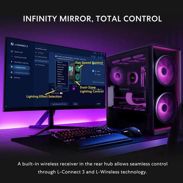 LANCOOL 217 Genuine Walnut Wood Computer Case, Mid-Tower ATX PC Case with 5 Pre-Installed PWM Fans 2x170mm, 2x120mm & 1x140mm, Flexible PSU & Cable Installation - Black (LAN217X) Black Infinity Mirror
