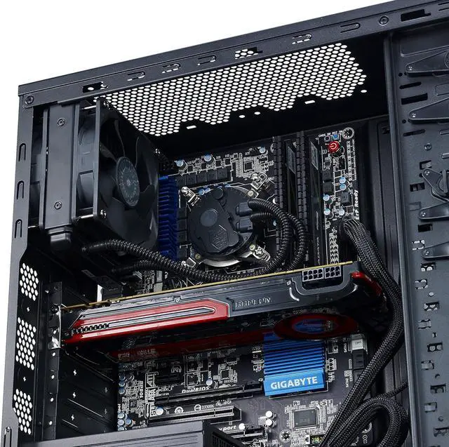 5. Includes two Cooler Master XtraFlo 120 mm fans (non-LED) arranged for optimum airflow with support for up to 8 fans total