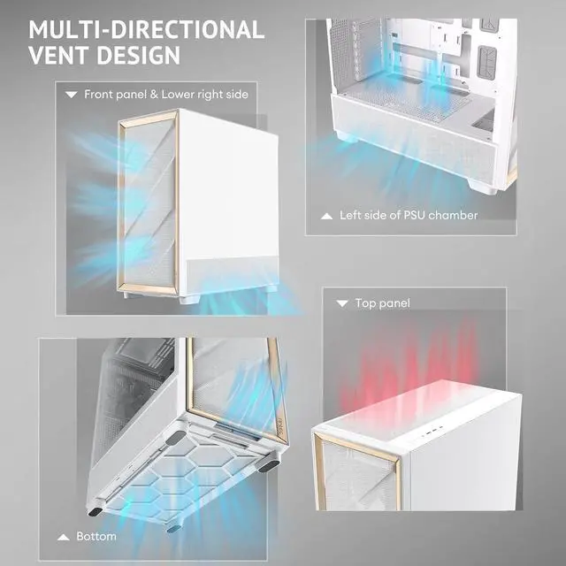 Multi-directional vent design creates a dedicated Antec Flux airflow channel.