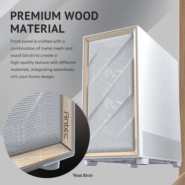 Flux Wood, 5 x PWM Fans Included, High-Airflow Front Panel with Walnut Wood, Type-C, 420mm Radiator & Back Connect Motherboard Support, Up to 9 Fans Simultaneously, Mid-Tower E-ATX PC Case FLUX W