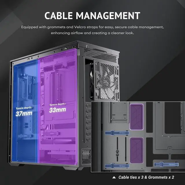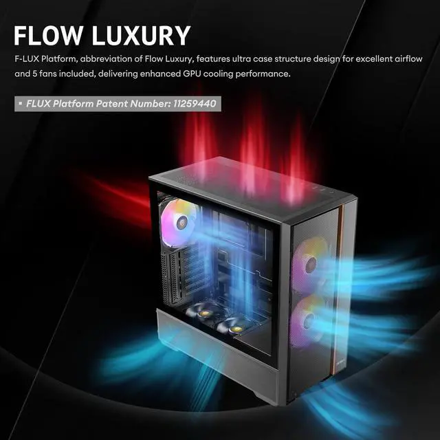 Multi-directional vent design creates a dedicated Antec Flux airflow channel.