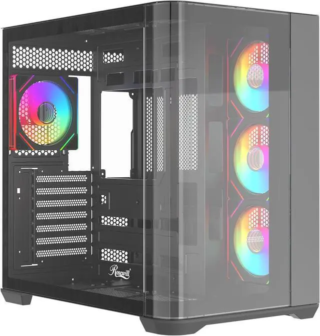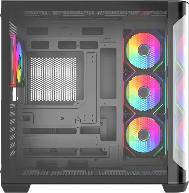 Pre-installed with 4 fans and a 4+4 port fan hub. Support max 10pcs fan installation.Top cover and M/B plate support 360MM AIO installation.give you the best cooling support.