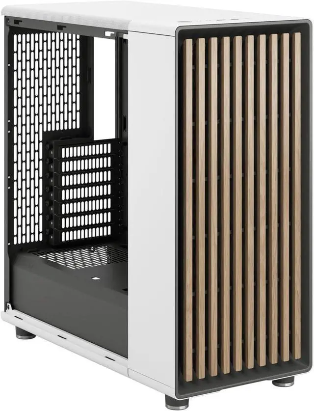 North Chalk White Tempered Glass Clear - Genuine Oak Wood Front - Glass Side Panel - Two 140mm Aspect PWM Fans Included - Type C USB - ATX Airflow Mid Tower PC Gaming Case