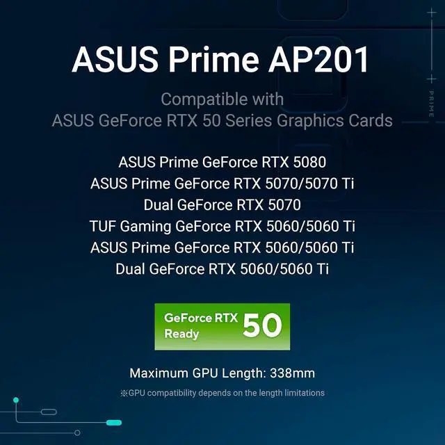Industry-Leading Spatial Efficiency: Despite a 33L footprint, the AP201 supports ATX PSUs up to 180 mm long, graphics cards up to 338 mm long, custom liquid cooling, and various storage devices.