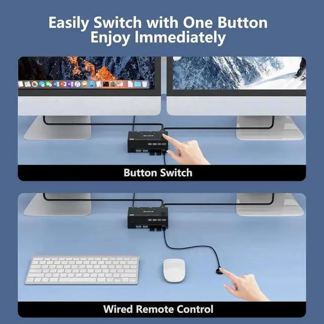 - This 2 in 3 out KVM switch output max resolution up to 8K@60Hz/4K@144Hz, each details can be displayed without any latency.