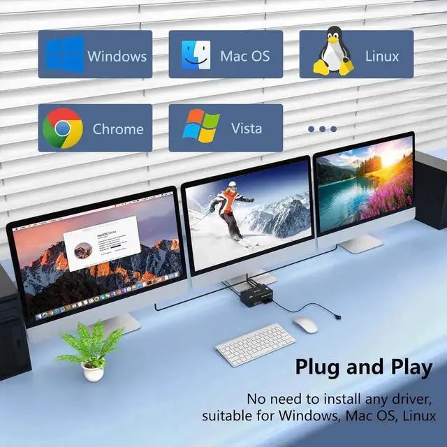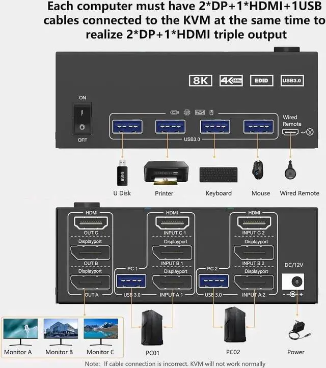 - This 2 Displayport+HDMI triple monitor KVM switch is perfect for 2 computers or laptops to share 3 monitors and 4 USB 3.0 devices (keyboard, mouse, printer, scanner and other USB devices, making the work space tidier and greatly improve work efficiency.