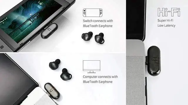 Advanced Features: First Wireless Stereo Bluetooth Transmitter for Nintendo Switch aptX Low Latency, Real-time Audio Sync Wirelessly Transmit Audio Anywhere, Anytime No battery needed but always on, Use Switch built-in driver and no bricking Problem Support USB PD passthrough charging to Switch with no overheating Super Compact & Light Weight, No Driver needed, Plug and Play Fast Pair, 10meters barrier-free transmission