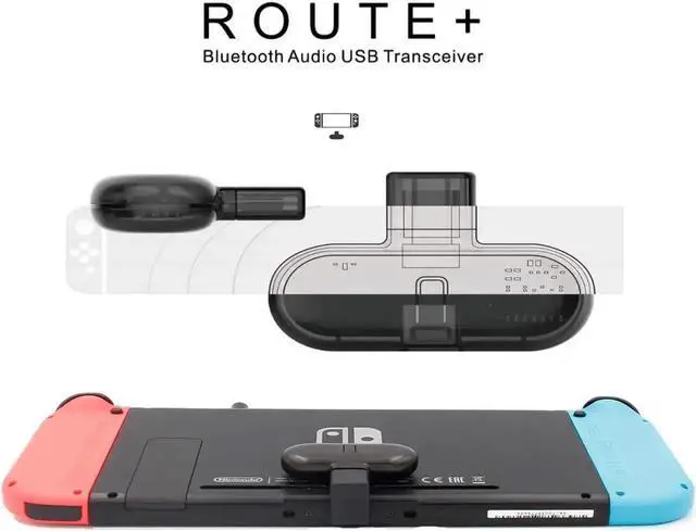Features: Now the Route+Pro version support in-game voice chatting with friends for video games. The upgraded wireless stereo bluetooth transmitter with aptX low latency technology compatible for Nintendo Switch, never be bound again to wire, a perfect solution to enable non-Bluetooth Switch connected to bluetooth receivers like Airpod earphones, wireless gaming headphone and Bluetooth Speakers Adopts aptX LL codec to eliminate that annoying lag you may get and ensure smooth transmission with impeccable sound quality for excellent game feel either on Nintendo Switch handheld mode or TV Dock mode and just insert this microphone gadget into Switch when a voice chat is needed, wirelessly transmit audio anywhere, anytime No battery needed! Built-in smart USB PD passthrough charging technology. Continuously wireless audio streaming even with passthrough charging to Switch, and no overheating. Always on when plug to Switch USB Type-C port directly, or plug to Switch dock USB A port for home mode through a cable adapter Extremly small size and lightweight for portable use, fast pair and automatically re-pair with the last paired device. 10 meters barrier-free transmission without any loss by advanced ceramic antenna. Come with a U-type adapter which would place the wireless transmitter on the back of Switch for a neat looking No driver needed, Quick pairing! Just set your earphones/ headphone/bluetooth speaker etc devices to bluetooth pairing status and plug this bluetooth audio transmitter to Switch type-c port.