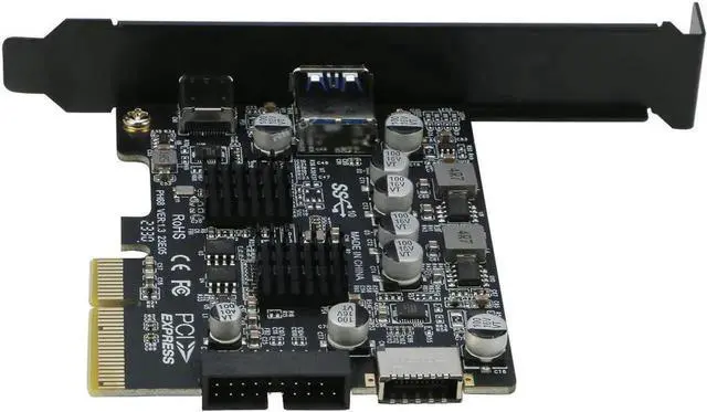 This PCIE USB 3.2 expansion card adopts ASM3142+822 main control chip, support PCIE 3.0 maximum bandwidth, each port of USB is 10Gbps rate.