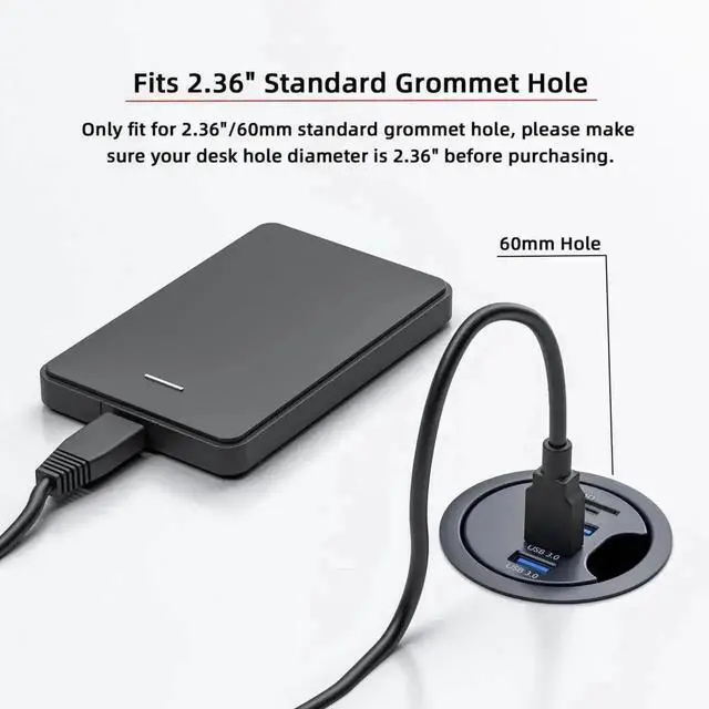 • 1)Only fit for 2.36"/60mm standard grommet hole, please make sure your desk hole diameter is 2.36" before purchasing.